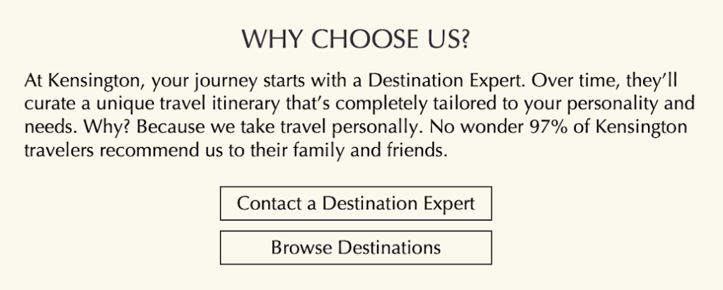 All of the copy in this project went through three rounds. During the first stage, I crafted my own copy from scratch. I wanted to enhance the personable feel of Kensington’s copy and convey quickly that it’s the brand’s tailor-made holidays that set it apart from other luxury travel brands.