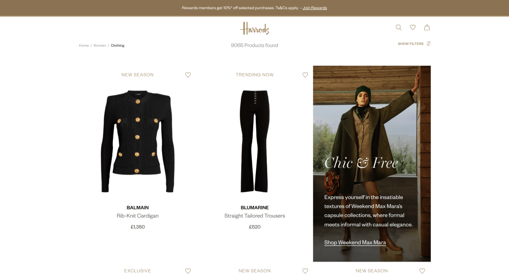 A gallery of fashion and beauty promos that were featured on product listing pages to highlight new products and collections.